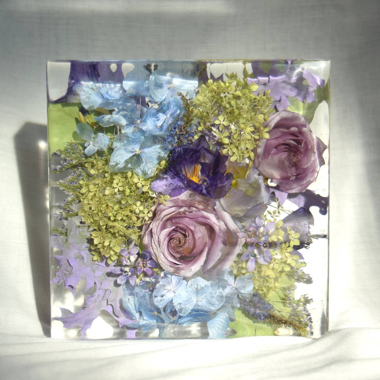 Kytice v pryskyřici - kostka 20x20 cm