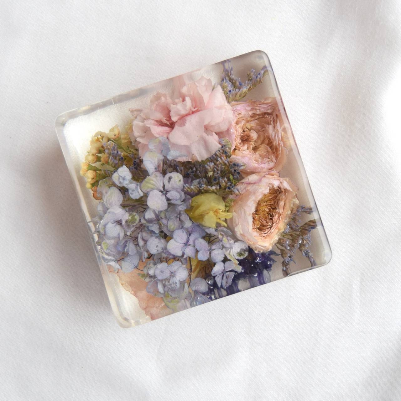 Kytice v pryskyřici - kostka 9x9cm
